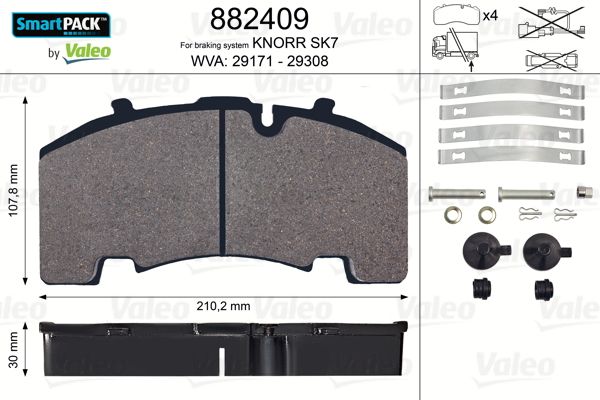882409 VALEO PHC Комплект дисковых колодок 211x108x30; Knorr SK7, SB4309 05/2003 = > Smart Pack