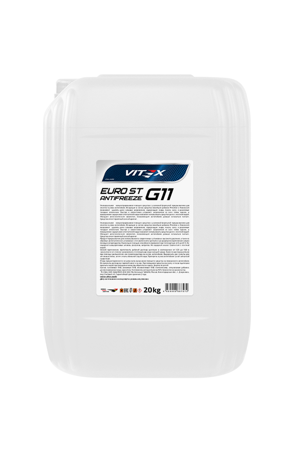 Vitex G 11 EURO ST — низкозамерзающая охлаждающая жидкость зелёного цвета, произведённая по европейским стандартам качества.