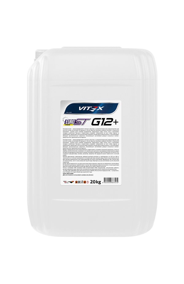 Antifreeze Vitex G 12+ EURO ST — низкозамерзающая охлаждающая жидкость фиолетового цвета класса G12+, обеспечивающая долговременную защиту двигателя от коррозии, перегрева и кавитации. Разработан по европейским стандартам для современных двигателей, рассчитанных на повышенные нагрузки.