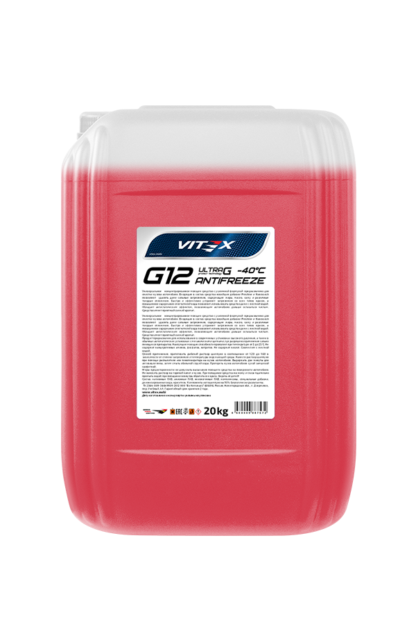 | Наименование | Жидкость охлаждающая низкозамерзающая Antifreeze Vitex Ultra G12 -40 20 кг |