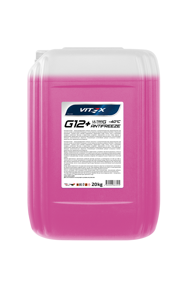 | Наименование | Жидкость охлаждающая низкозамерзающая Antifreeze Vitex Ultra G12+ 40 20 кг |