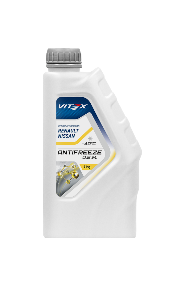 Vitex O.E.M for Renault / Nissan — жёлтый антифриз карбоксилатного типа, созданный для бензиновых и дизельных двигателей автомобилей Renault и Nissan. Обеспечивает надёжную защиту от коррозии, накипи и кавитации при температурах до –40 °C, срок службы — до 5 лет или 250 000 км.