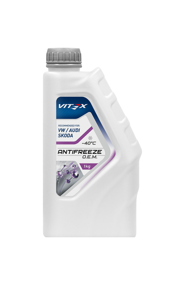 Vitex O.E.M for VW Audi Skoda — фиолетовый лобридный антифриз, созданный по требованиям концерна VAG (Volkswagen, Audi, Skoda, Seat). Обеспечивает максимальную защиту от коррозии, кавитации и перегрева, рассчитан на срок службы до 10 лет или 500 000 км.