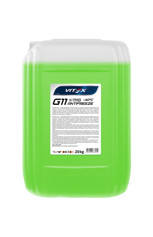 | Наименование | Жидкость охлаждающая низкозамерзающая Antifreeze Vitex Ultra G11-К Green 20 кг |