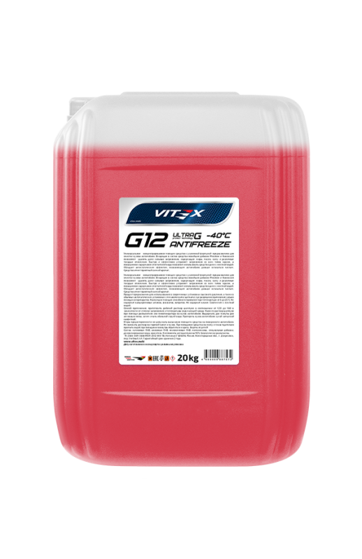 | Наименование | Жидкость охлаждающая низкозамерзающая Antifreeze Vitex Ultra G12-К 20 кг |