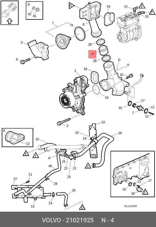 21021925 VOLVO патрубок !гофрированный водяного насоса \ RVI
