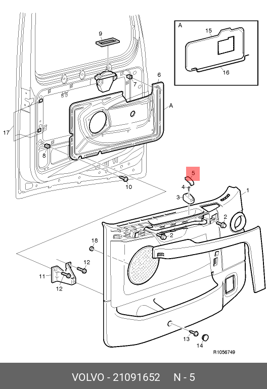 21091652 VOLVO Заглушка ручки открывания двери FH3