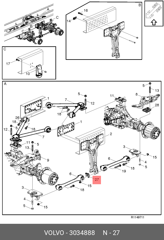 3034888 VOLVO Регулировочная шайба вед. моста 1 мм