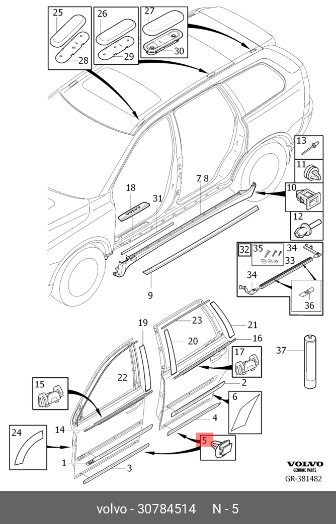 30784514 VOLVO клипса!\ Volvo S80/XC90