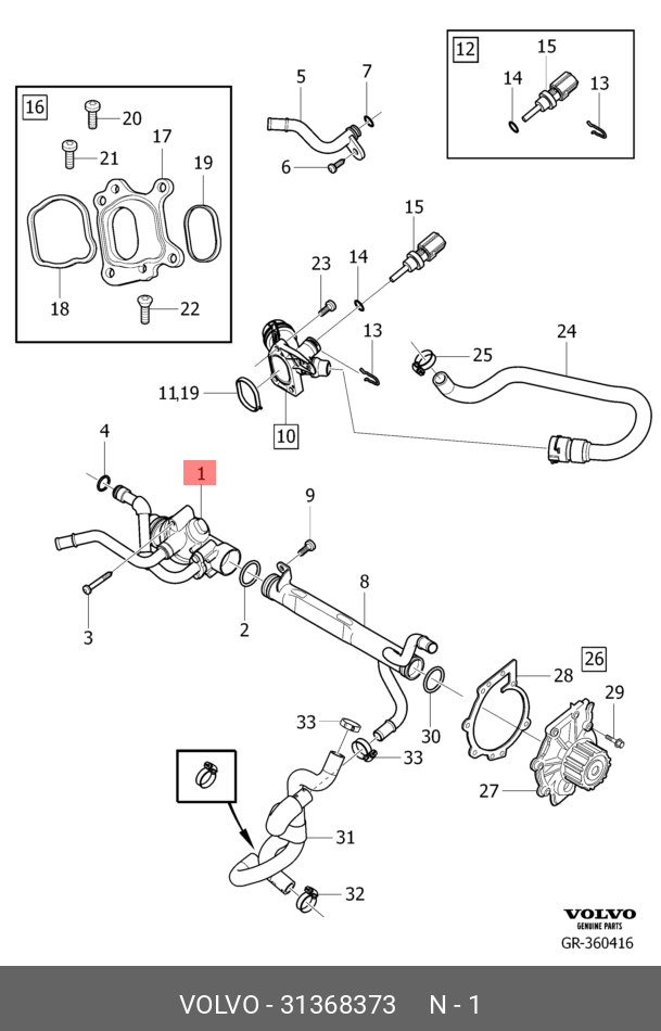 31368373 VOLVO термостат!\ Volvo S80/V70/XC60/XC70 07>