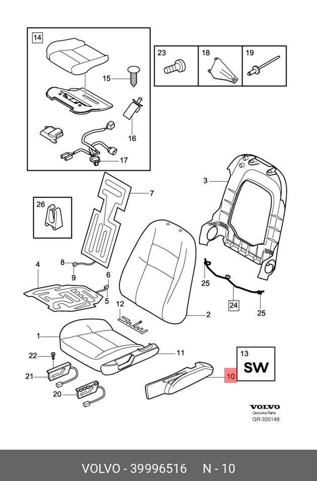 39996516 VOLVO накладка сиденья!\ Volvo S60/S70/S80/XC70/V70 97>