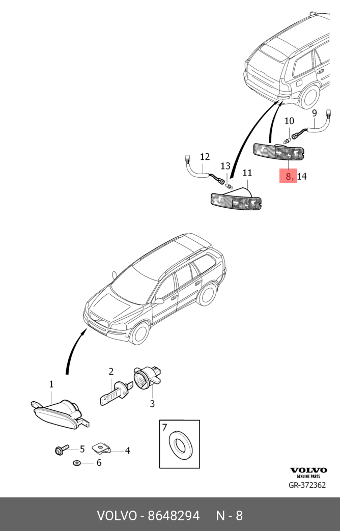 8648294 VOLVO Фонарь задний в бампер левый