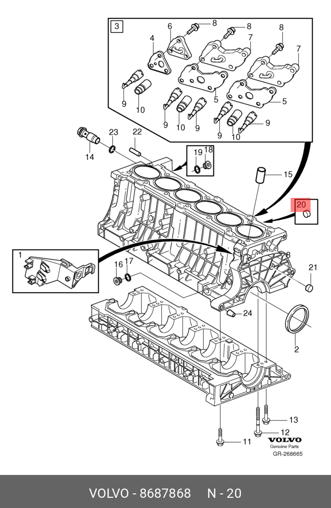 8687868 VOLVO заглушка блока цилиндров!\Volvo XC90 2014/XC70 01-08/V70 00-08