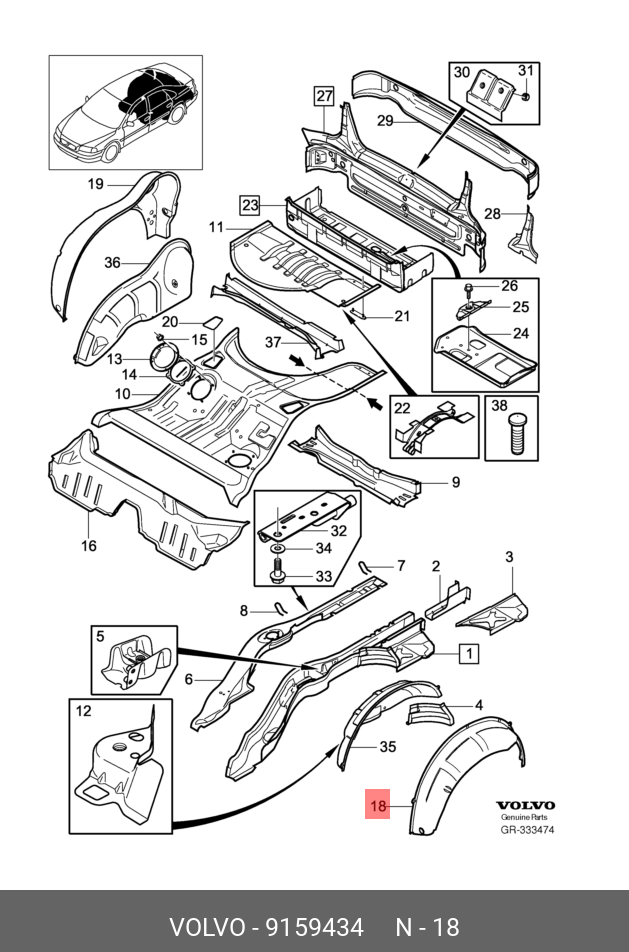 9159434 VOLVO Арка колесная задняя левая Volvo S80 1999-2006