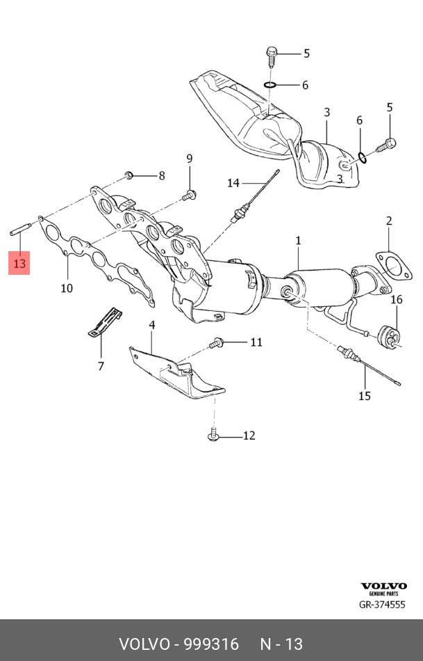 999316 VOLVO 999316 Шпилька выпуского коллектора