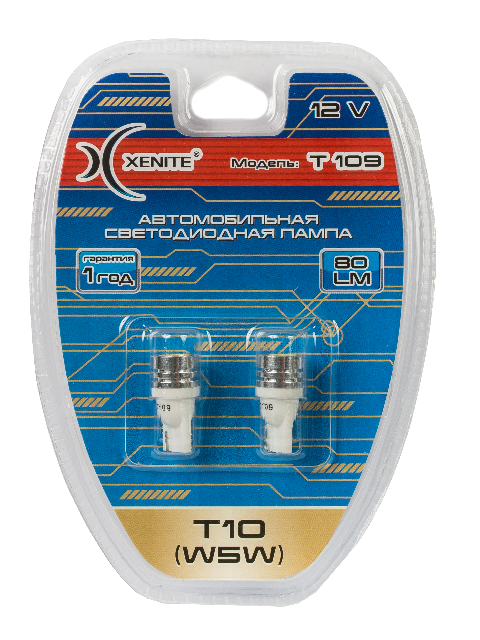 | Наименование | Лампа светодиодная 12V W5W T10W W2.1x9.5d бесцокольная блистер (2шт.) XENITE |