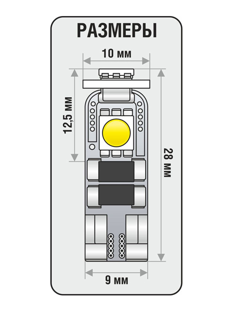 | Наименование | Лампа светодиодная 12V W5W T10W 1W W2.1х9.5SD бесцокольная белая блистер (2шт.) |