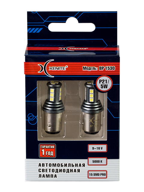 | Наименование | Лампа светодиодная 12V P21/5W BaY15d бокс (2шт.) XENITE |