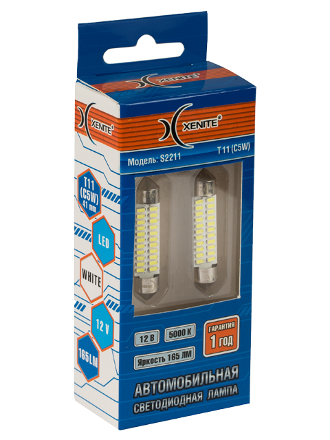 | Наименование | Лампа светодиодная 12V C5W SV8.5-8 41мм блистер (2шт.) XENITE |