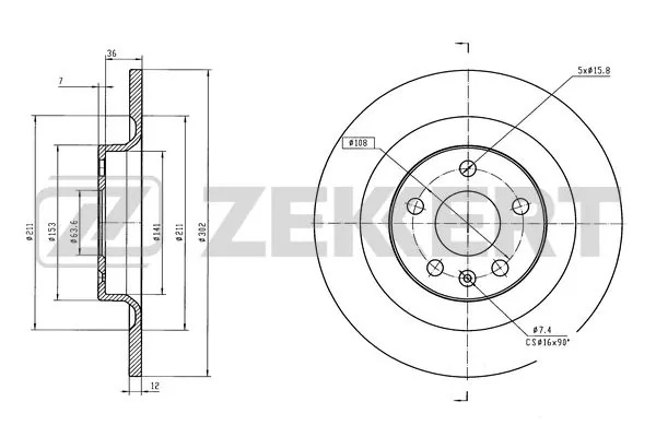 BS6596 ZEKKERT Диск тормозной задний Volvo XC60 II 17- S60 III 19- S90 II 16- V90 II 16- BS-659