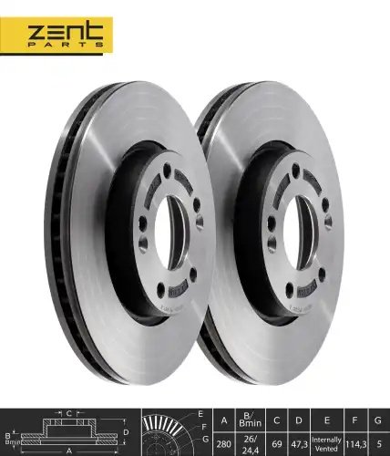 Z05954 ZENTPARTS Диск тормозной передний KIA Ceed, Hyundai i30 1.4-2.0/1.6CRDi 06>