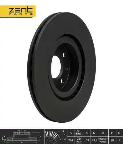 Z06125 ZENTPARTS Диск тормозной передний Alfa Romeo 155, Fiat Croma 2.0T/2.5TDi 92>