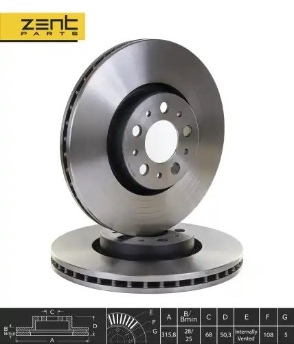 Z06197 ZENTPARTS Диск тормозной передний Volvo XC90 2.5/3.0/2.4TD 02>