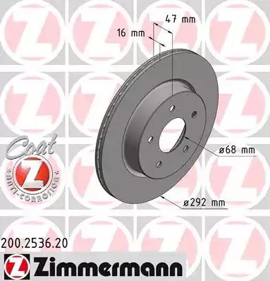 200.2536.20 ZIMMERMANN Диск тормозной NISSAN X-Trail (T32R) (14-) (2.0/2.5) задний (1шт.) ZIMMERMANN