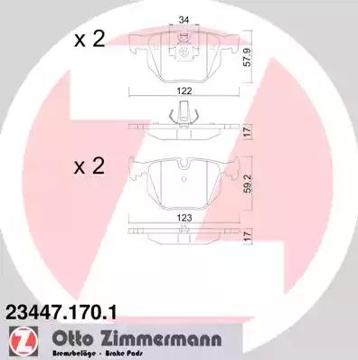 23447.170.1 ZIMMERMANN колодки дисковые !задн. 122x58x17 \ BMW X5 (E70/F15) 2.0D-3.0D 07>/X6(E71-F16) 3