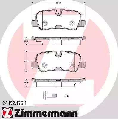241921751 ZIMMERMANN колодки дисковые !задн. 117x46x17 \ Land Rover Discovery/Range Rover 4.4i V8/2.7