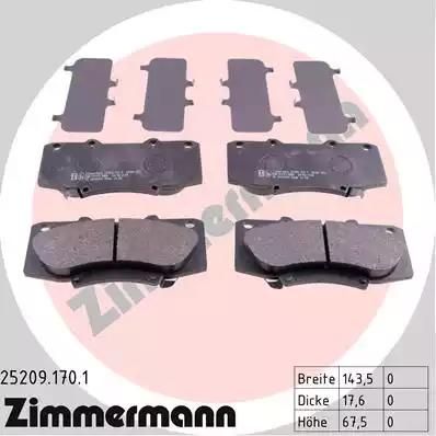 25209.170.1 ZIMMERMANN колодки дисковые !перед. 144x68x17 \ Toyota Land Cruiser J12 4.0i/3.0D 03>, Lexu