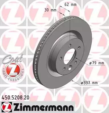 450.5208.20 ZIMMERMANN диск тормозной !перед. 337x30/62-5x120 \ Range Rover Discovery 4.4 04>
