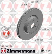 530.2467.20 ZIMMERMANN диск тормозной !перед. 316x30/57-5x114 \ Subaru Tribeca 3.0/3.6i 05>