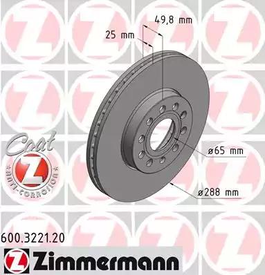 600.3221.20 ZIMMERMANN диск тормозной !перед. 288x25/50-5x112 \ Audi A3, Skoda Octavia, VW Golf 1.6-2.0