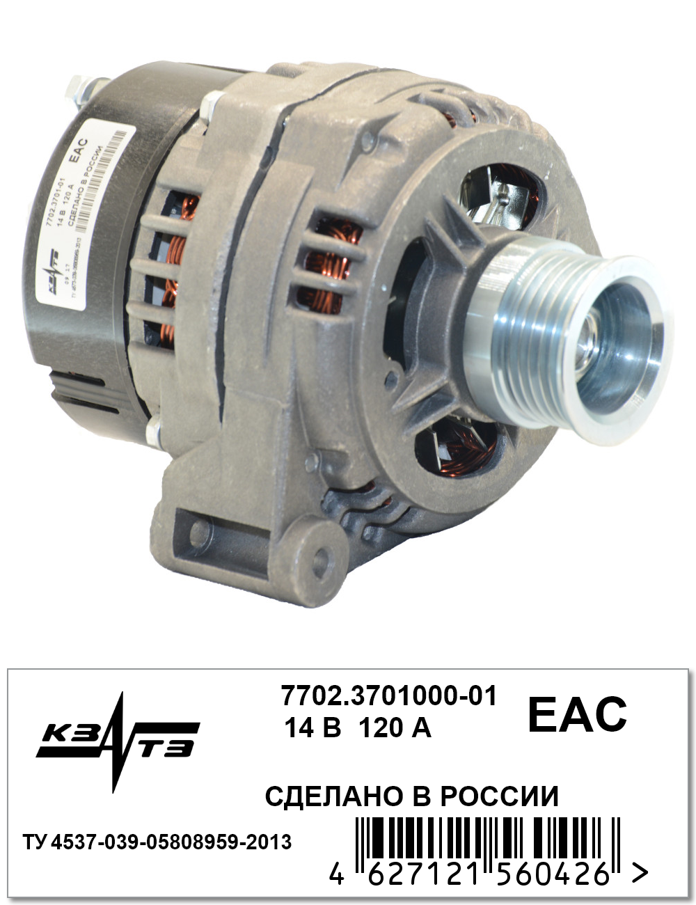 7702.3701000-01 KZATE Генератор ГАЗ-31029,3110,3302,УАЗ дв.ЗМЗ-40510,40522,40524,406.10,409.10 14В 120