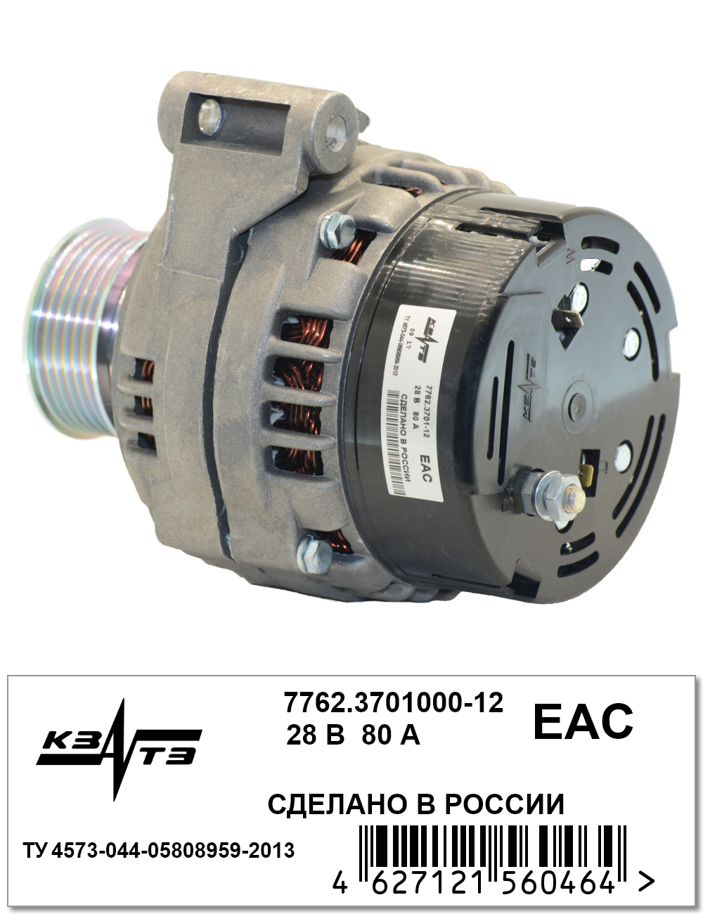 7762.3701000-12 KZATE Генератор КАМАЗ,МАЗ дв.740 ЕВРО-2,ЯМЗ-658 поликлиновой шкив,монокронштейн 28В 80