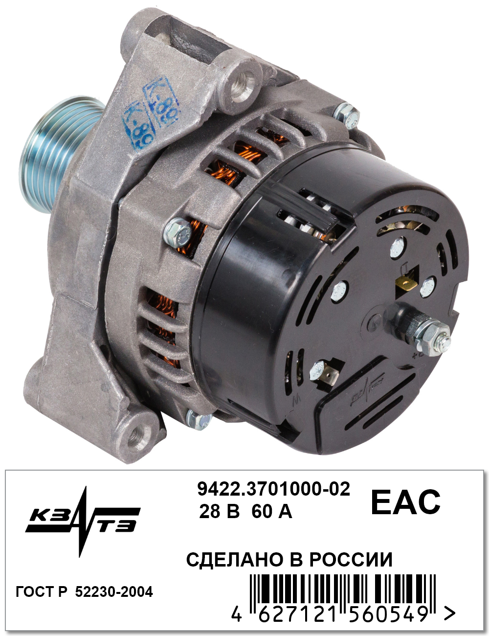 9422.3701000-02 KZATE Генератор МАЗ,УРАЛ дв.ЯМЗ-236НЕ2-24 28В 60А КЗАТЭ (ЗиТ)