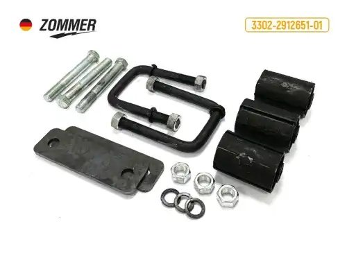 3302291265101 ZOMMER Комплект крепления рессоры задней ГАЗель (серьги+болты+стремянки+3 с/б) (ан.ГАЗ)
